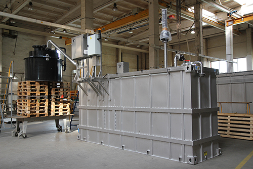 The first picture shows the manufactured WWTP in our production shop after final inspection, before shipment to the Customer.
